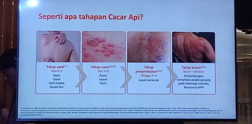 “Virus Varicella zoster tetap akan tinggal di saraf bertahun-tahun setelah cacar dinyatakan sembuh. Virus ini dorman alias tidur di ujung saraf, letaknya persis di dekat tulang belakang. Ketika imunitas tubuh menurun, virus itu dapat kembali ‘bangun’ dan memicu cacar api,” ujar dr. Ade dalam diskusi media ‘Cegah Cacar Api Tanpa Tapi’ bersama Kementerian Kesehatan, PERKI, Yayasan Jantung Indonesia dan GSK Indonesia di Jakarta, Selasa (28/4).